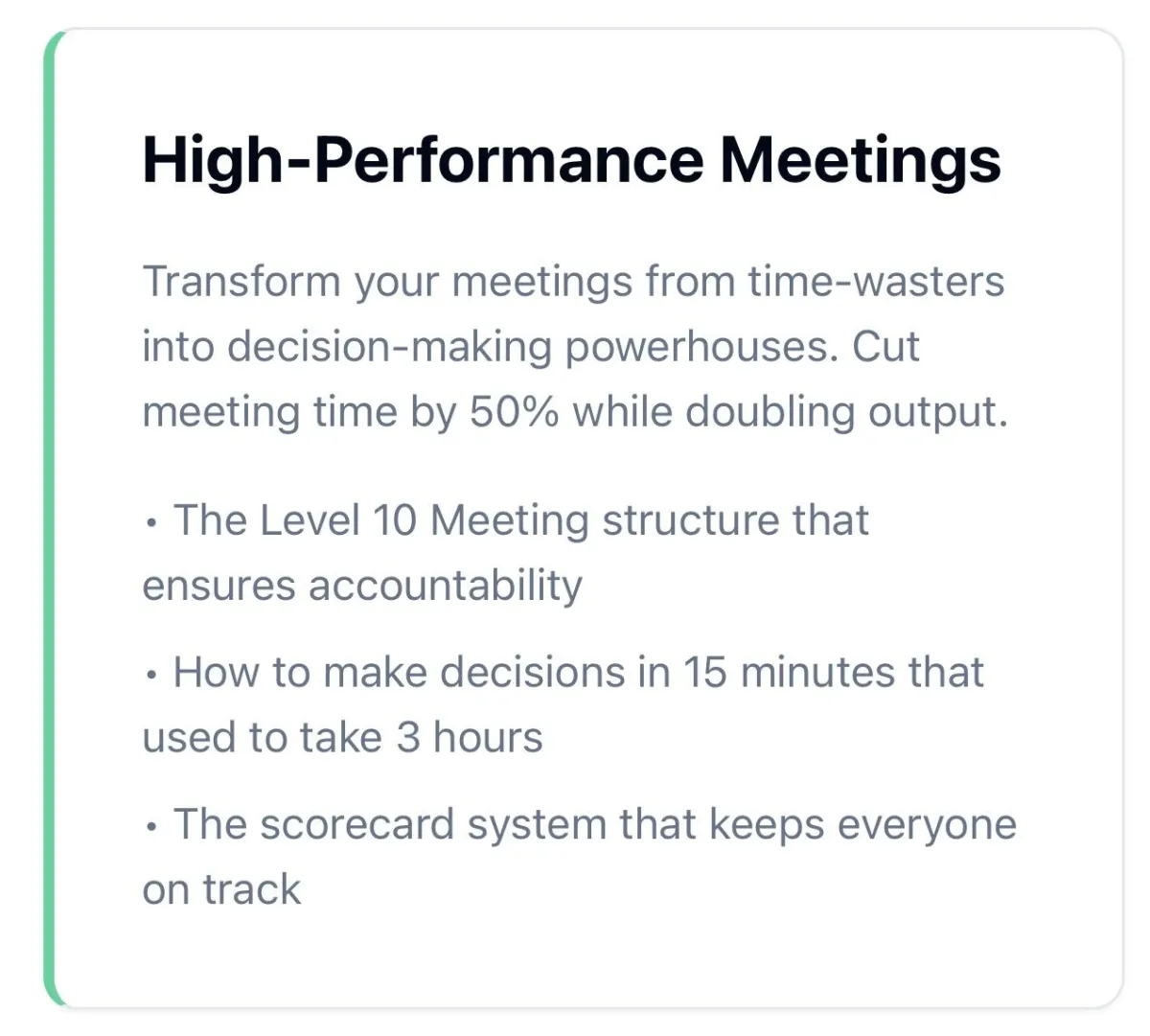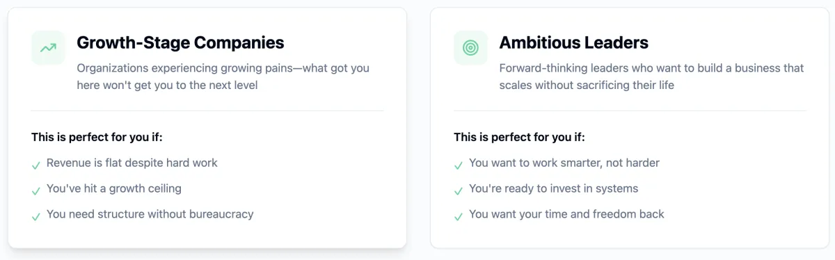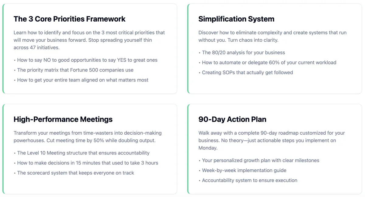 You’ll learn a proven operating system used by fast-growing companies to improve decision-making, strengthen accountability, and build an organization that runs without constant firefighting.