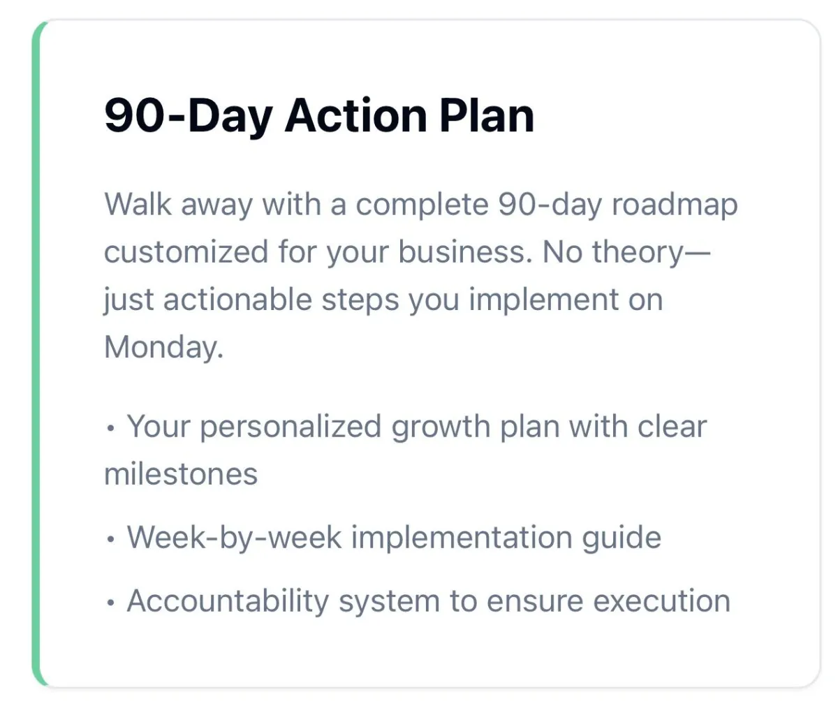 Yes. You’ll gain access to follow-up materials, a 90-day structured action plan, and optional coaching support to ensure your implementation stays on track.
