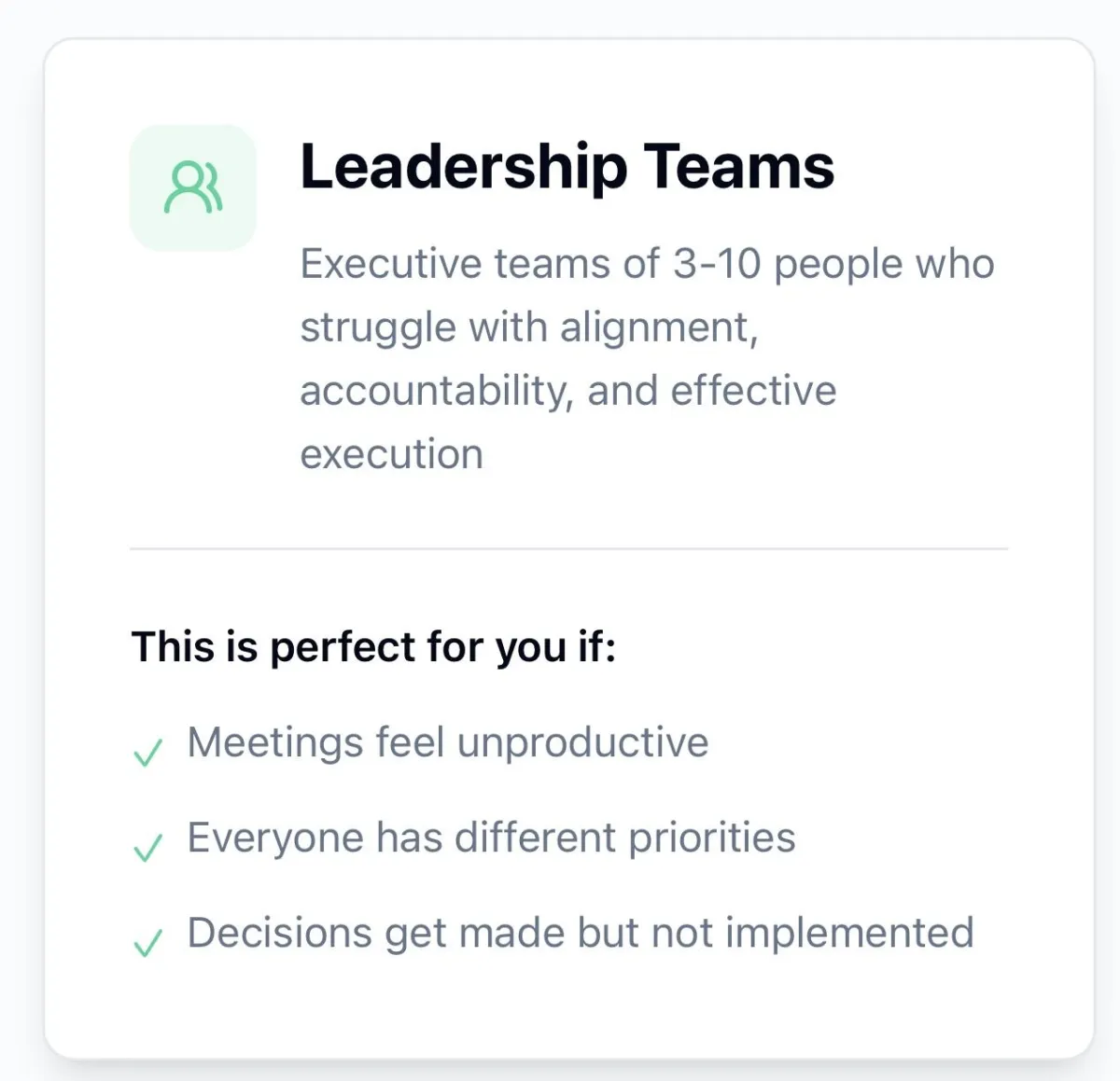 You’ll discover the structure, scorecard, and rhythms needed to prepare your team for scaling — so when they join later, you already have a framework in place.